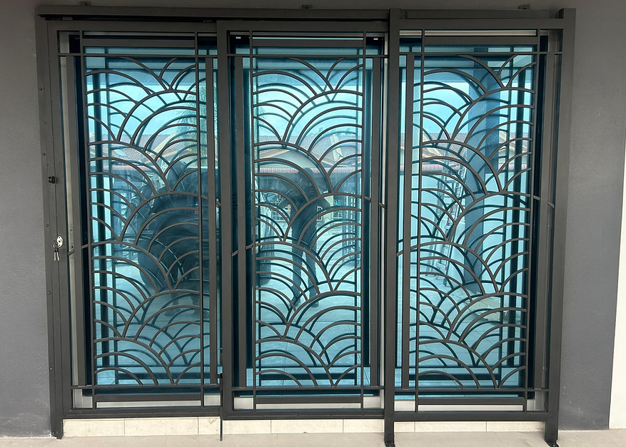 Grill Custom Curved Design, contoh grill pintu utama, pintu sliding dan grill tingkap yang kami hasilkan untuk sebuah rumah di Ipoh.